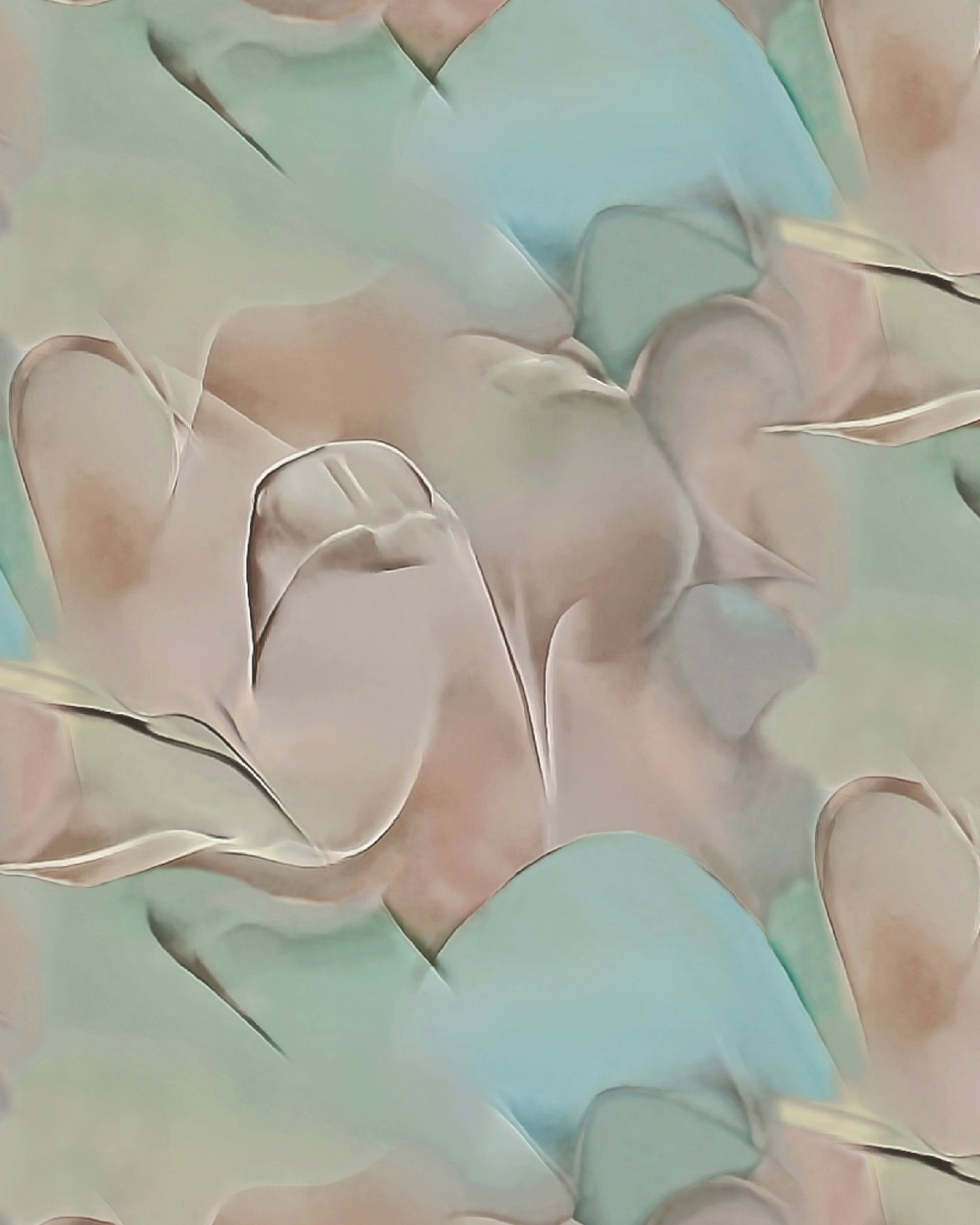 Light pattern in pastels, developed from light reflections in a glass presse-papier.